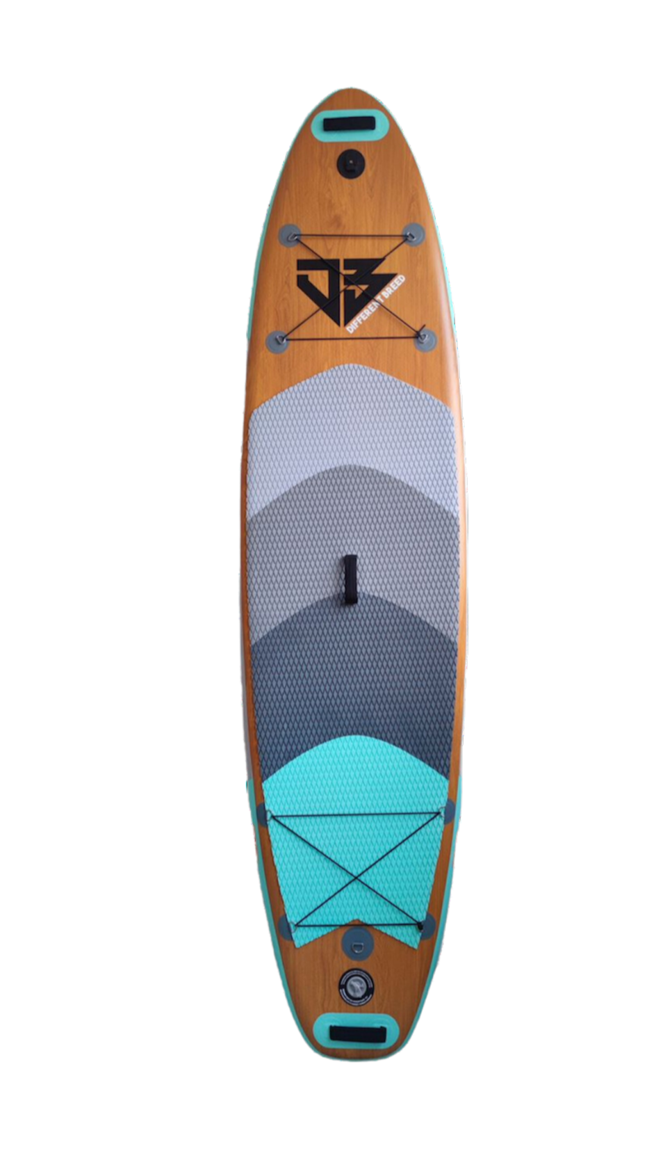 The Different Breed Inflatable Paddleboard iSUP offers the most rigid feel for all around riding and our proven model. Allowing for up to 20 pounds of air pressure that can be read on the pump psi. gauge. To allow for this solid construction, Two layers of premium drop stitch bamboo PVC base cloth material are used for the top & bottom while connected with a unique silk screening and added internal stringers. This is our most rigid boards and for those looking for added stiff feel. A unique five fin system is proven to be superior and our custom method. Four fins are integrated, aligned as a quad with one removable centre standard SUP fin that can be placed in for maximum control. The top is gripped with a diamond shape EVA traction deck pad. We offer a one year manufactures defect. Direct sunlight is highly not recommended unless of course enjoying a paddle. Store out of direct sunlight in shaded area or an indoor location. Inflate and deflate as needed.