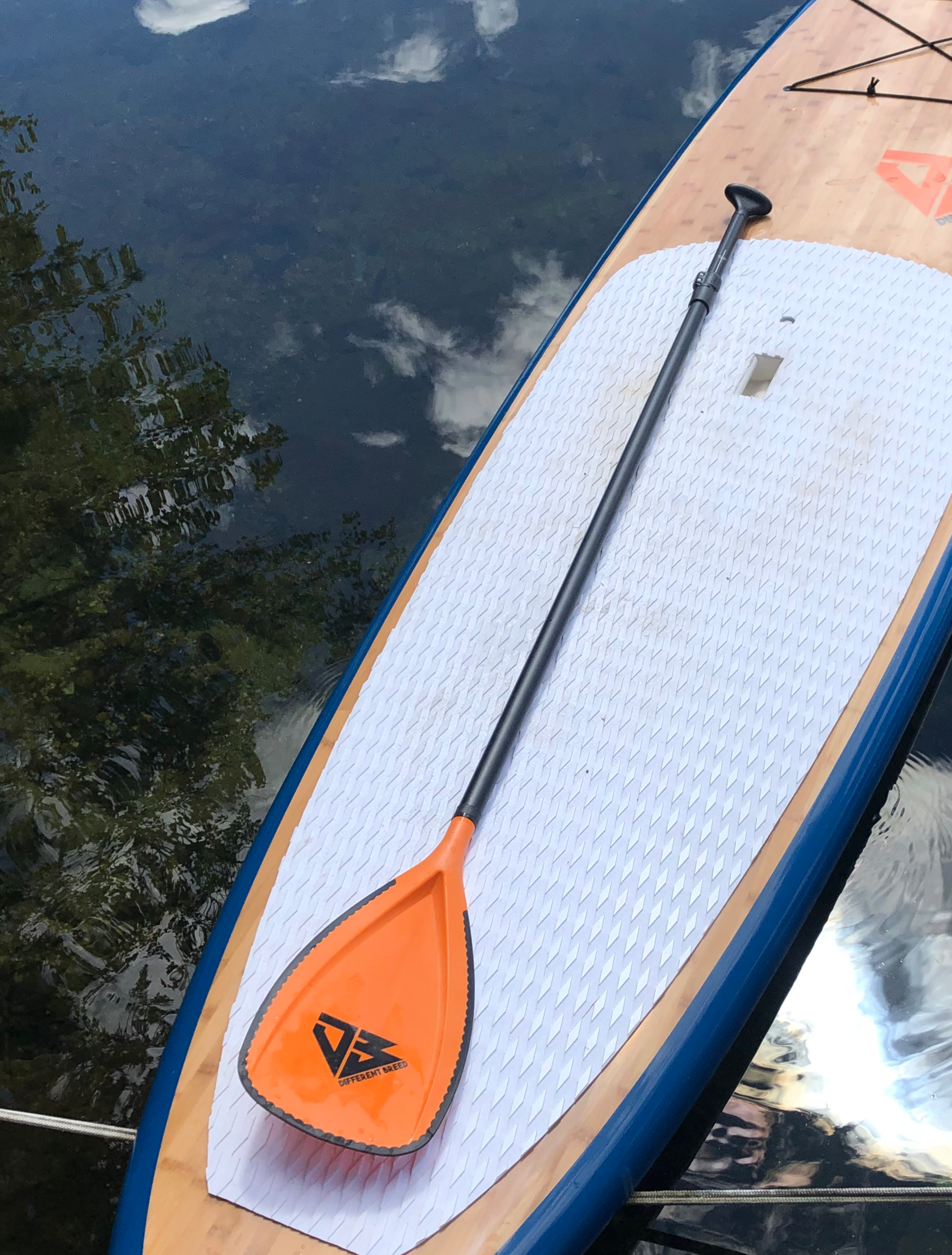 Great entry-level paddle that is very durable and solid. A medium flex to the shaft and blade will keep you paddling for seasons to come. Adjustable lengthening handle with a sleek pressure clip and has a comfortable grip. Floats well when needed and is light weight. Three piece and adjustable suitable for traveling.